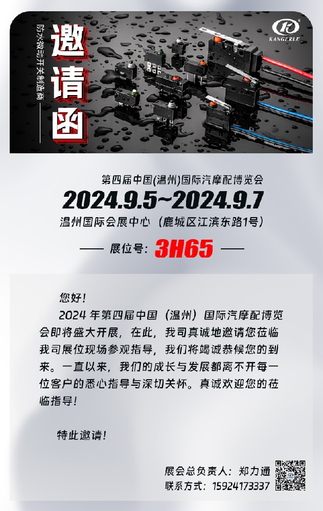 尊敬的客戶:您好!我們誠摯地邀請您參加即將在2024年9月5日至7日舉辦的第四屆中國(溫州)國際汽摩配博覽會?!ぁぁ?/p>